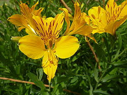 y tienen flores rojizo- amarillas con manchas de color castaño. El follaje de esta
